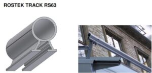 The Rostek Monorail System for facades is a patented product family including the RS111, RS133, RS133D and RS162 monorail profiles. These monorails will cover almost any application and can achieve bracket spacing of between 2.0 and 5.5 metres.